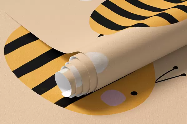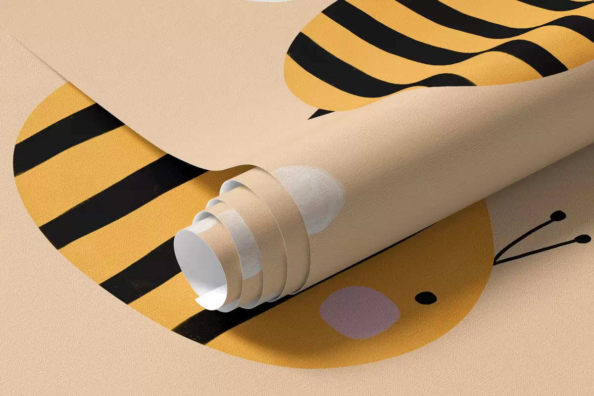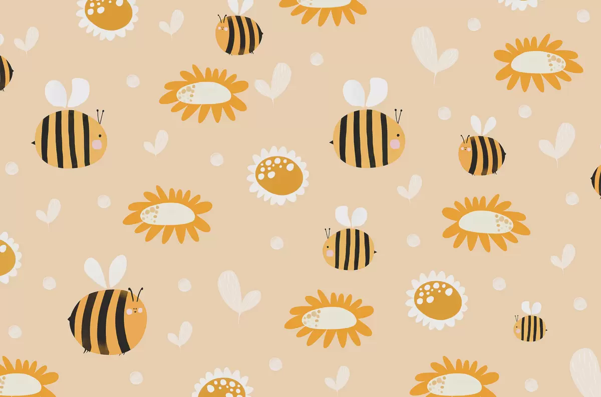 Fototapetes Bite lido apkārt ziediem, dzeltenā, baltā krāsā, bērnišķīgas, vienkāršas formas Nr. w00622