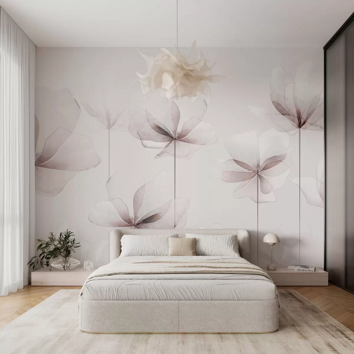 Fototapetes Maigi caurspīdīgi ziedi 3D art deco modernā stila tendence Nr. w00895