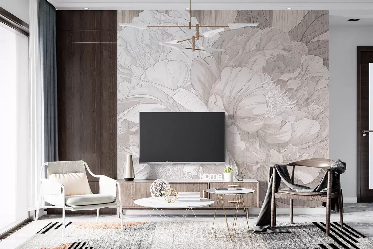 Fototapetes Lieli peoniju ziedi ar faktūru bēšos toņos Nr. w01141
