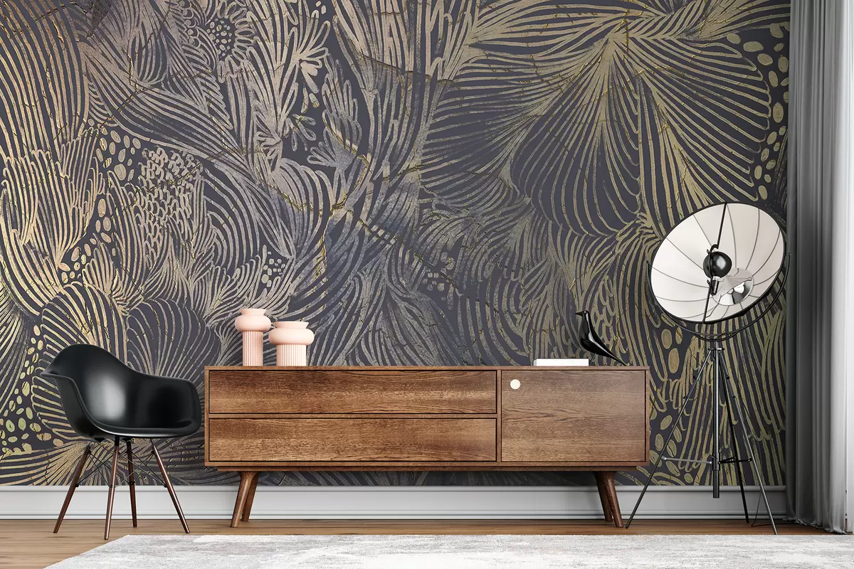 Fototapetes Abstraktā tekstūraina luksusa apdruka ar organiskām pārklājošām formām un līnijām Nr. w01243