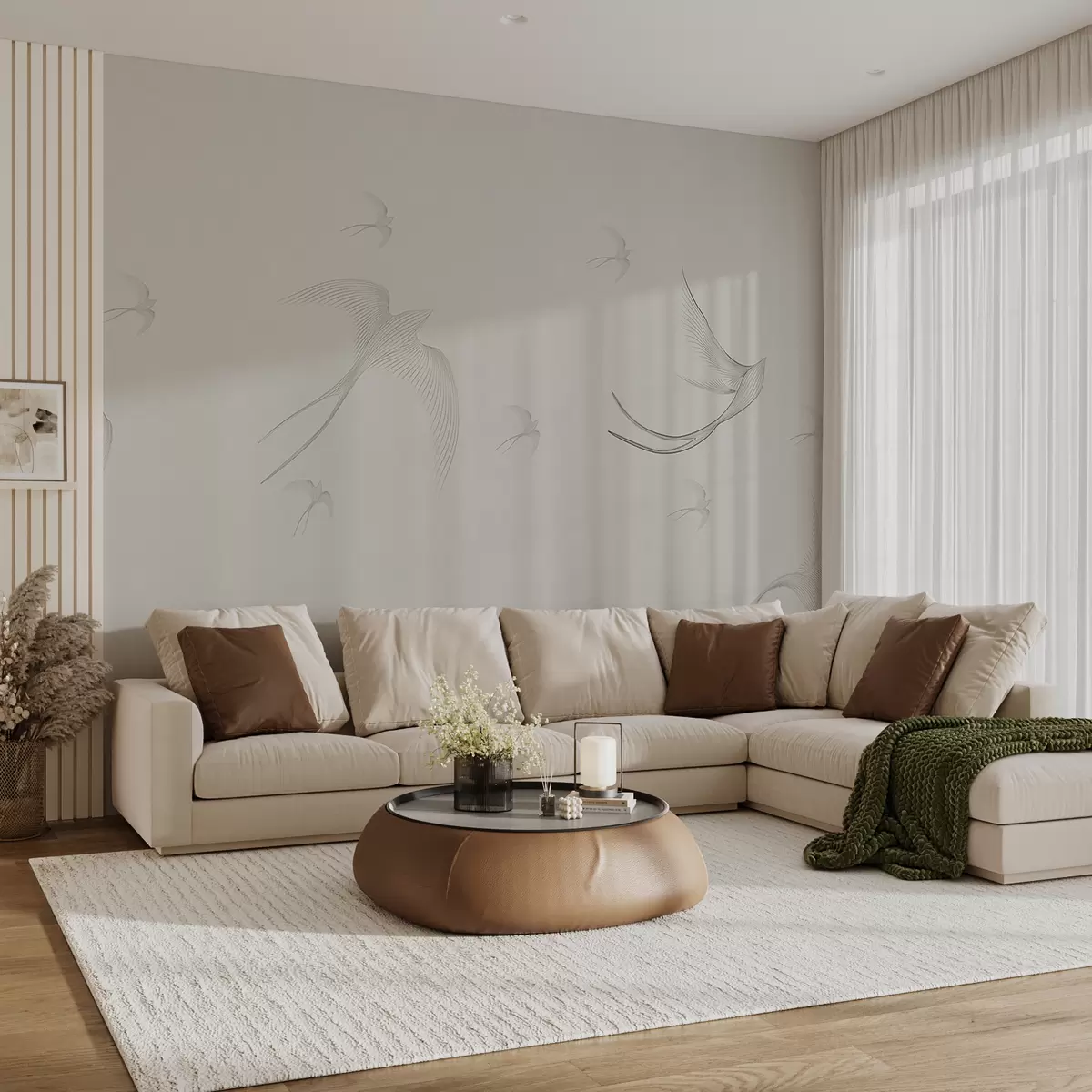 Fototapetes Lineāras bezdelīgas uz bēša fona Nr. w01264v1