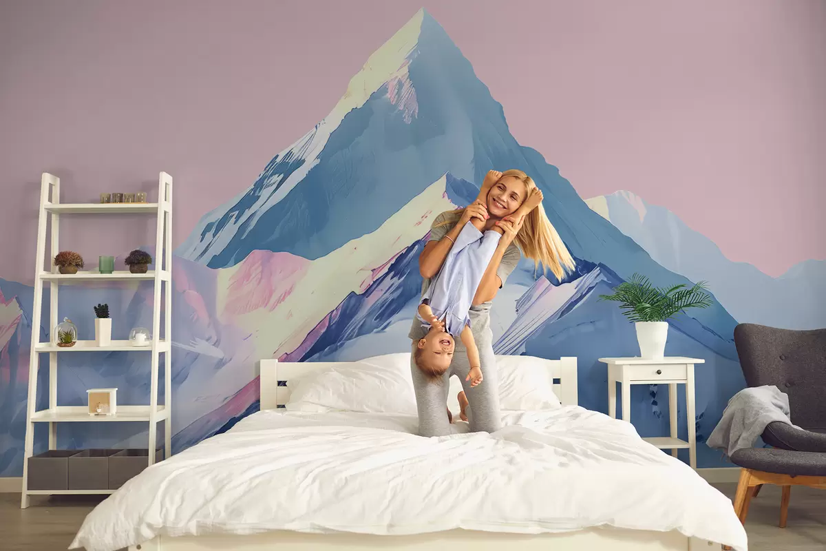 Fototapetes Zili un rozā kalni zīmētā stilā Nr. w01497