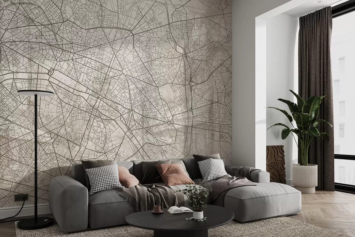 Fototapetes Parīzes pilsētas karte, līnijzīmējums, arhitektūra, Francija, bēšas krāsas Nr. w01697