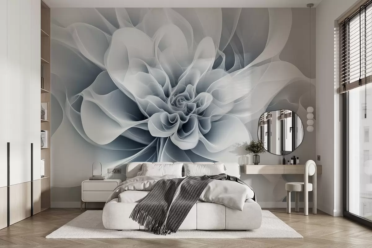 Fototapetes Elegants abstrakts zieda attēls ar gludām līnijām zilā krāsā Nr. w01853
