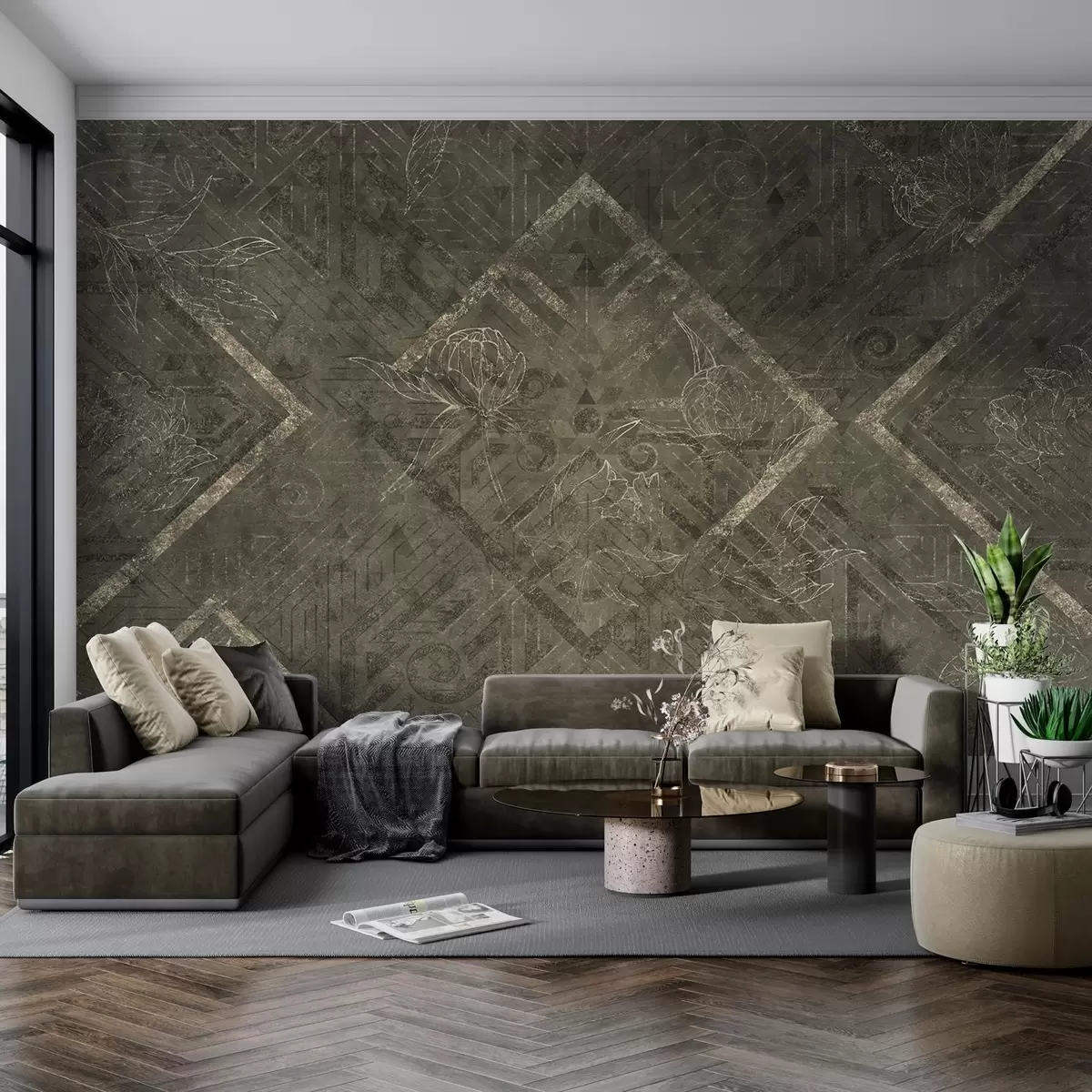 Fototapetes Grunge tekstūra ar ziedu rakstiem dzeltenā krāsā Nr. w02079