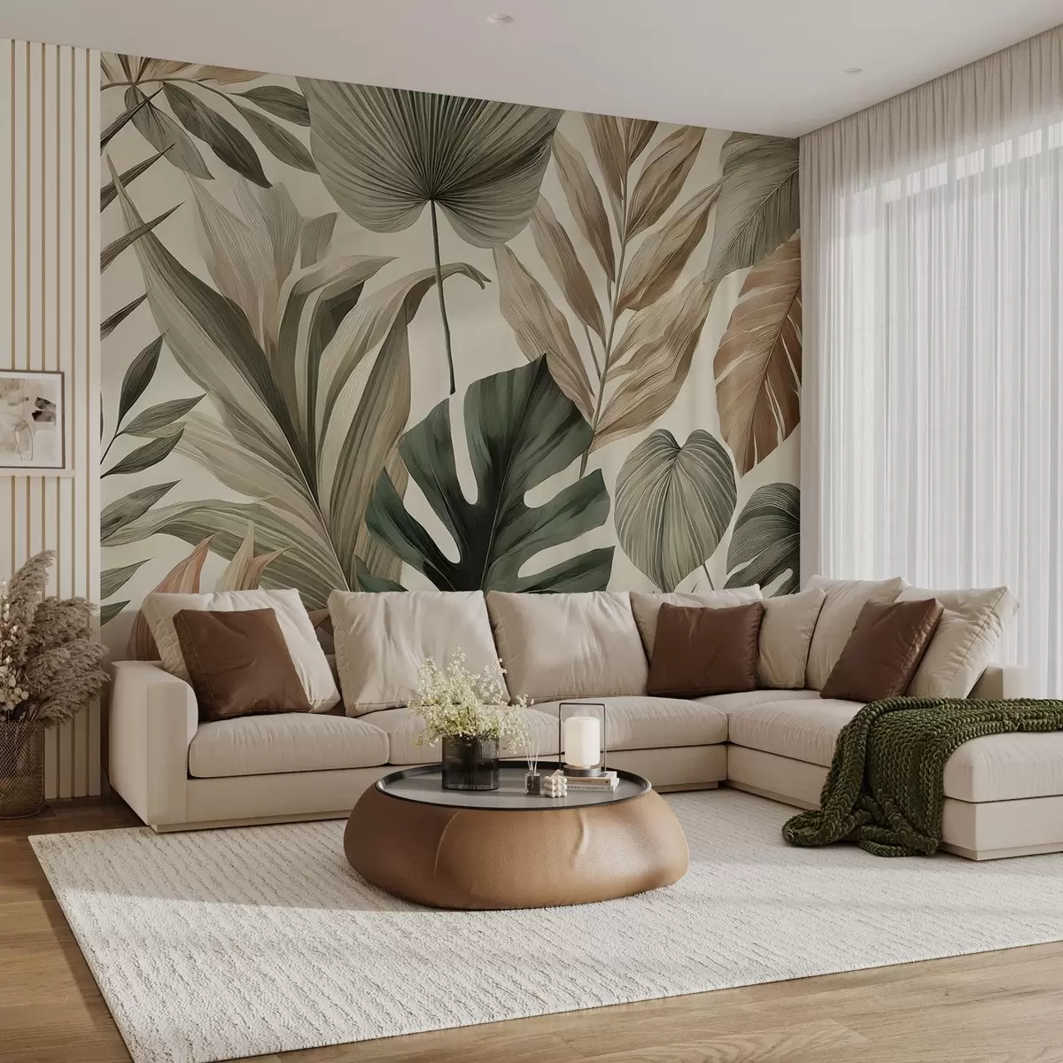 Fototapetes Lielas tropu lapas atturīgos, maigos pasteļtoņos Nr. w02082
