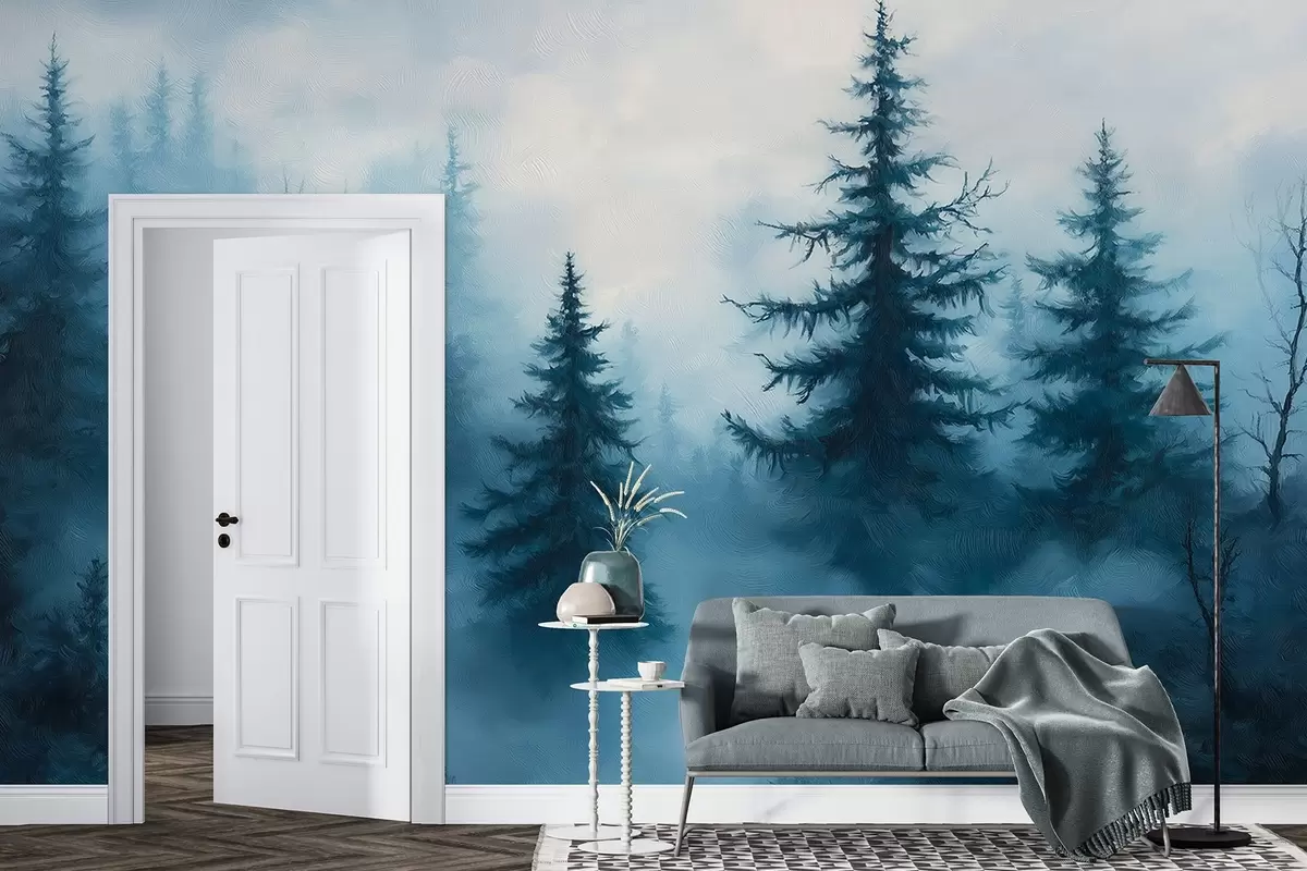 Fototapetes Tumši zils mežs, eļļas glezna, otas triepieni, daba Nr. w02153