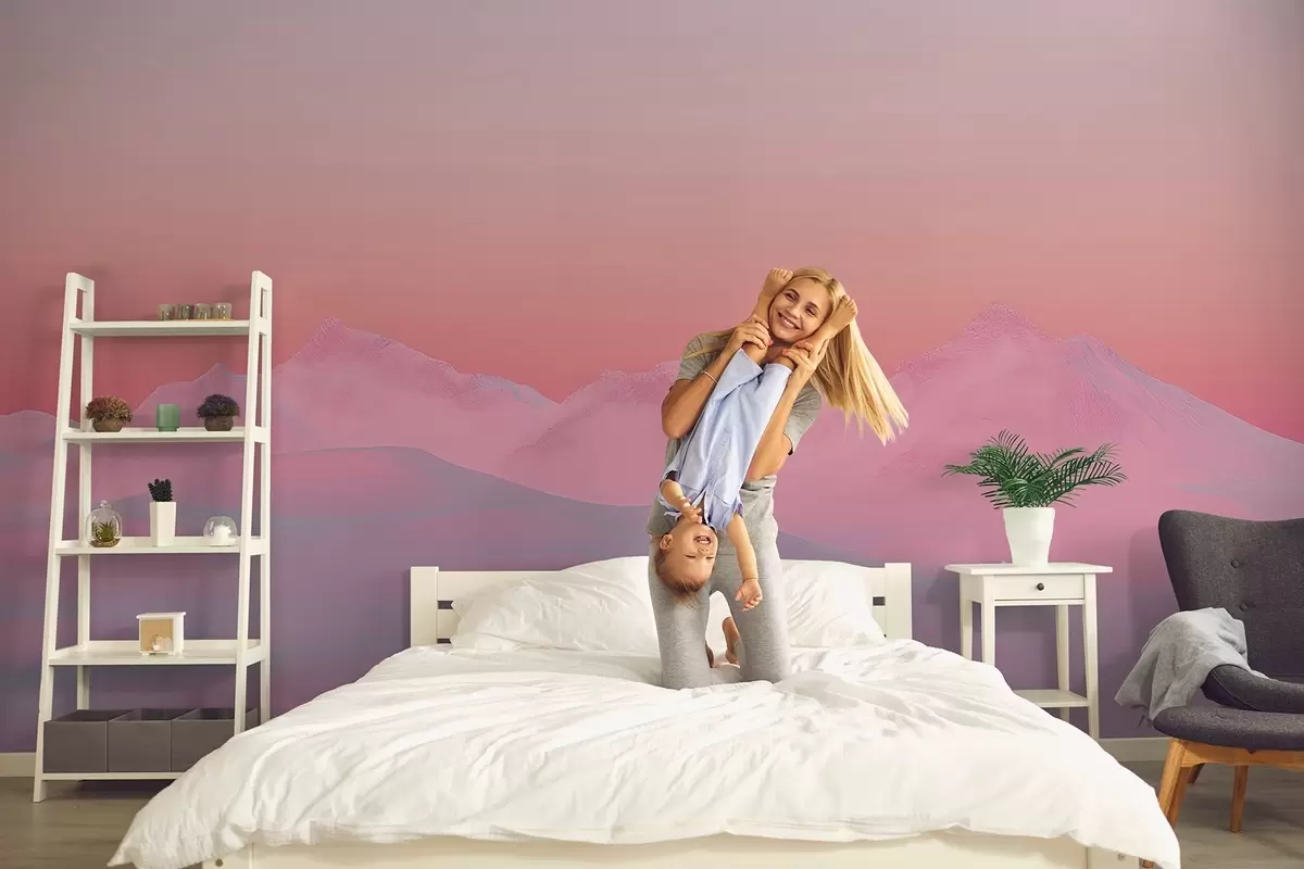 Fototapetes Maigs aveņu saulriets uz kalnu un debesu fona Nr. w02234