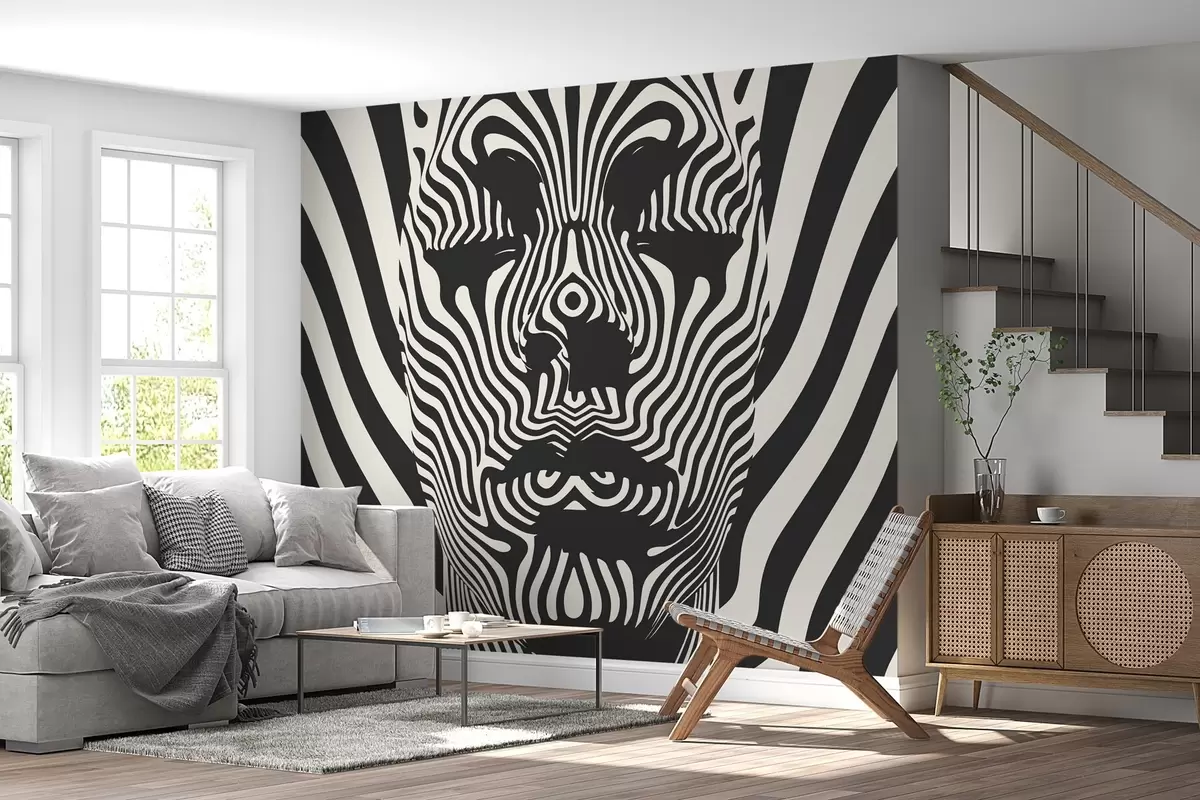 Fototapetes Op art stila režģis ar abstraktu seju, viļņotas līnijas uz gaiša fona. Nr. w02285
