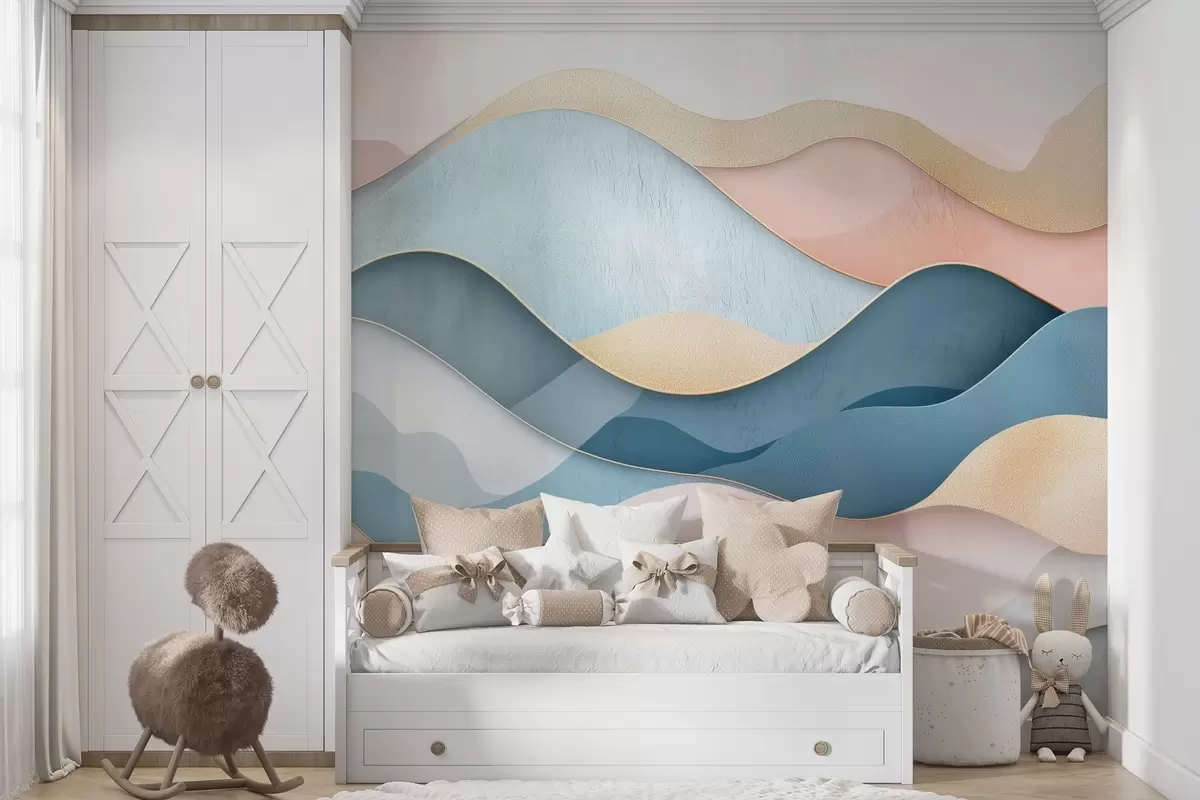 Fototapetes Viļņots Art Deco raksts rozā un zilā krāsā Nr. w02290