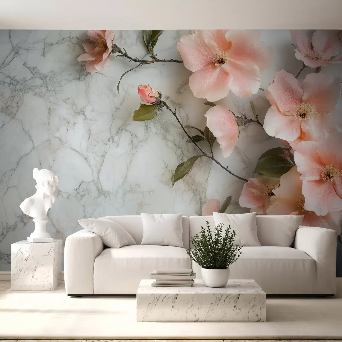 Fototapetes Maigi ziedi uz marmora imitācijas fona Nr. w02291