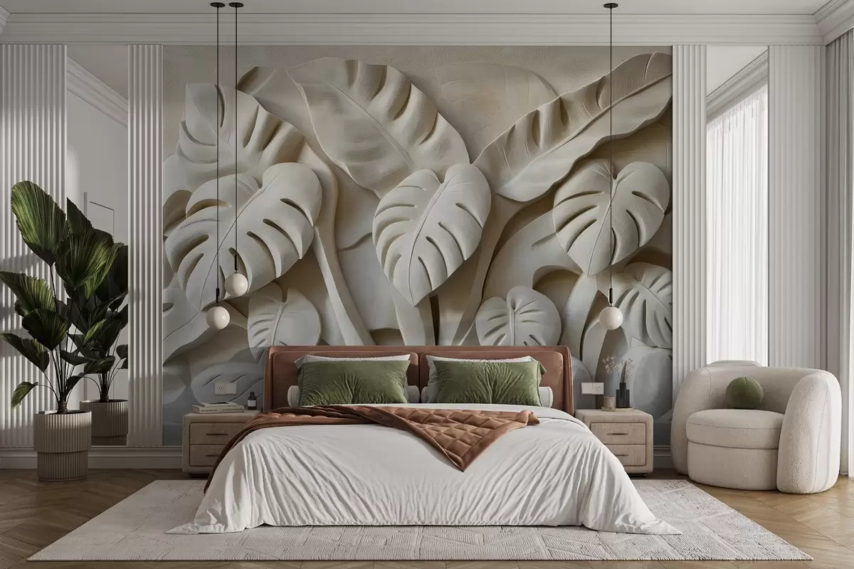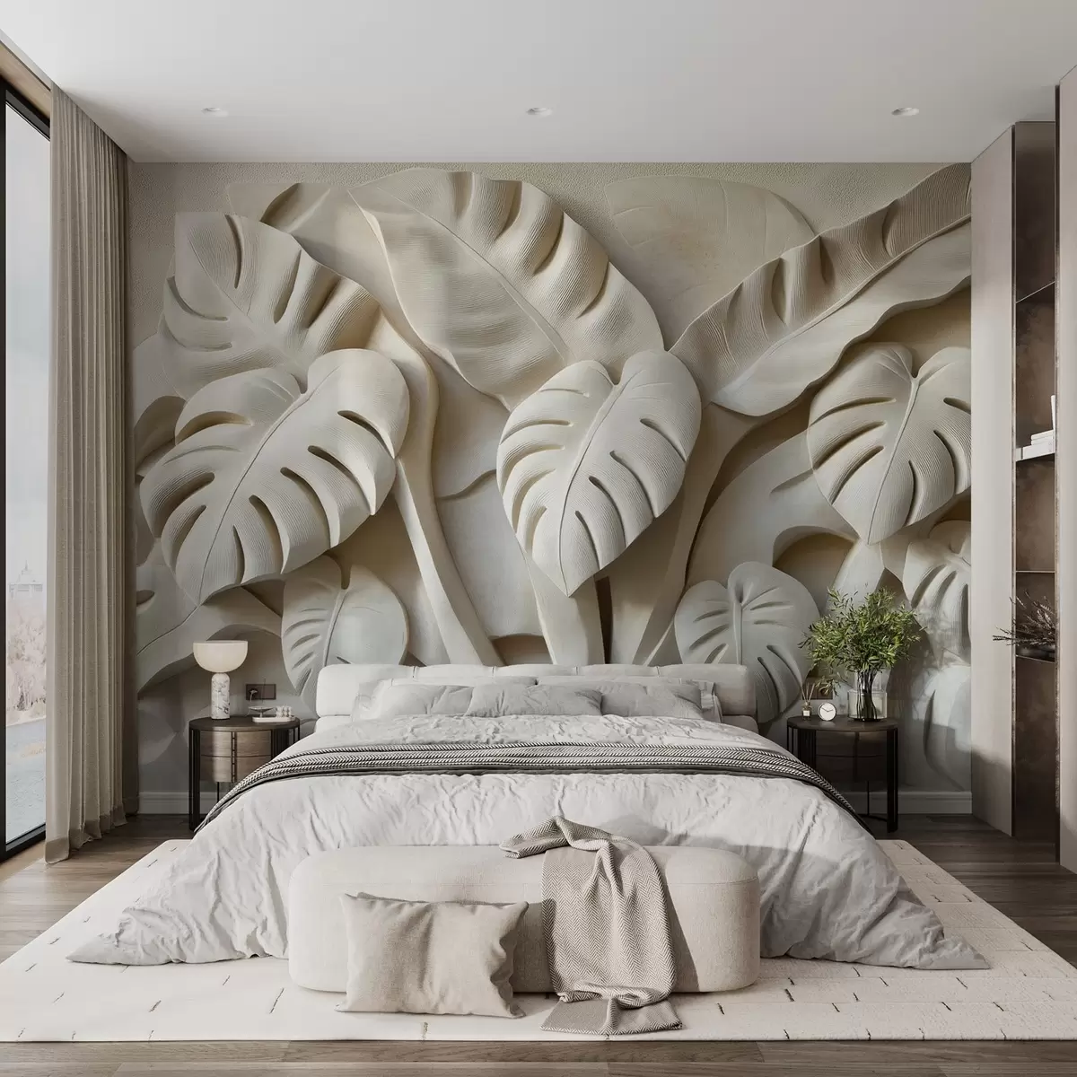 Fototapetes Lielu monsteras lapu bareljefs w02312
