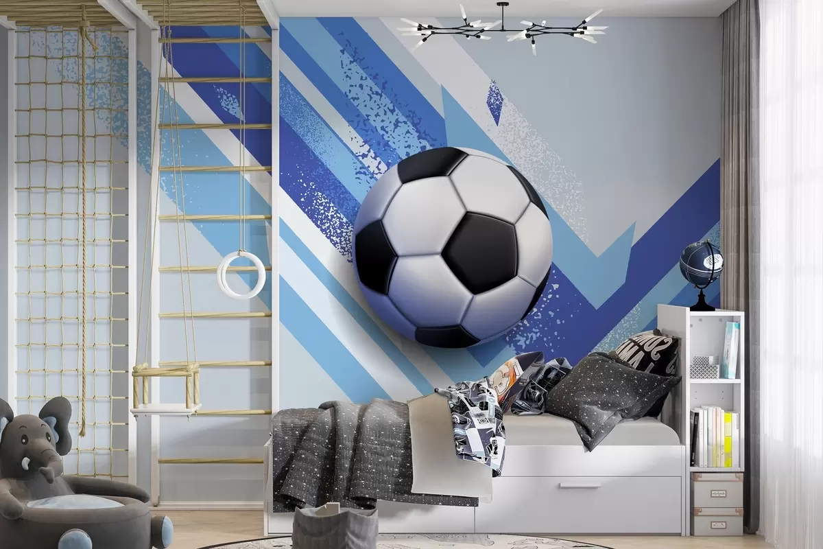 Fototapetes futbola bumba uz dinamiska abstrakta fona zilā krāsā Nr. w02347