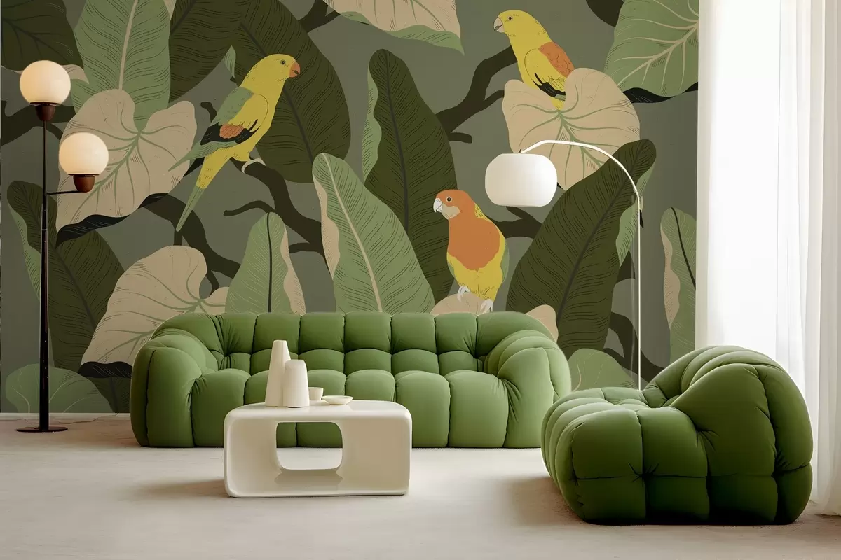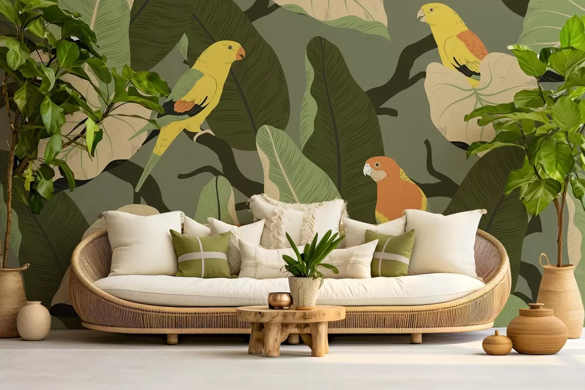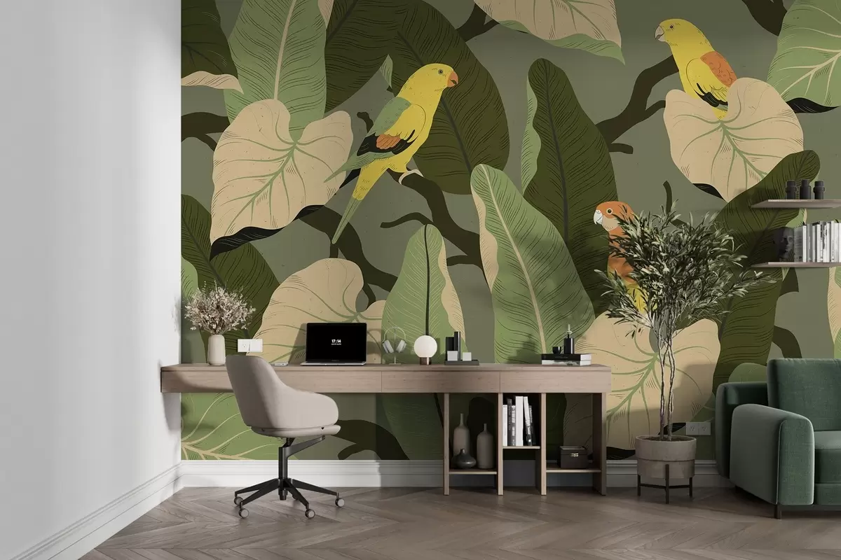 Fototapetes tropu lapas ar papagaiļiem Nr. w02402