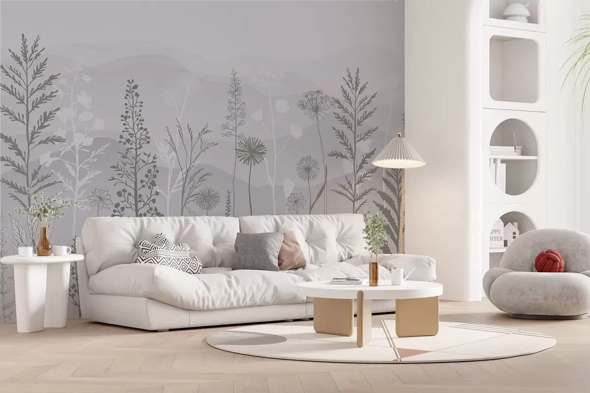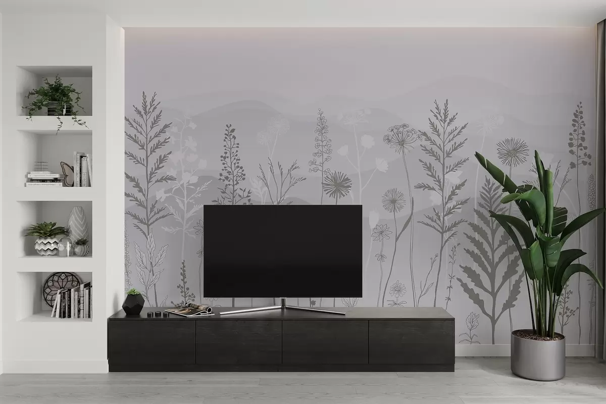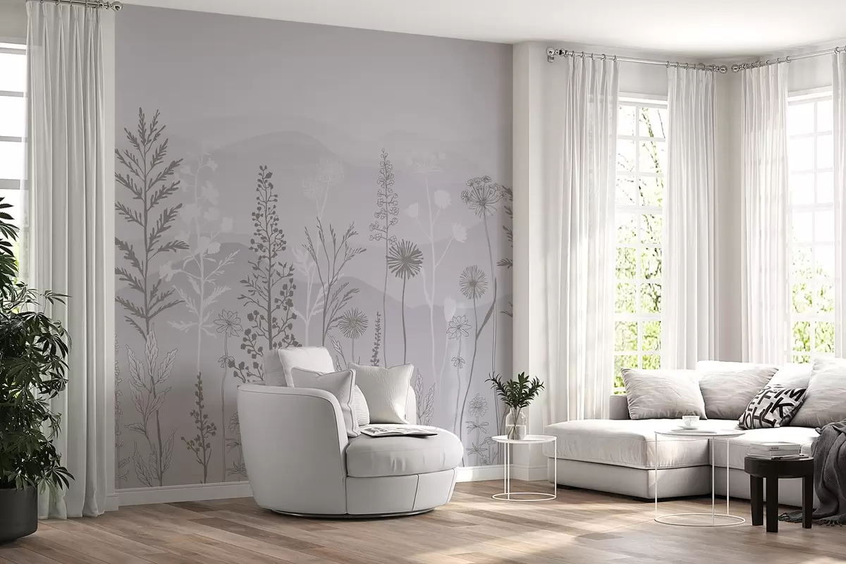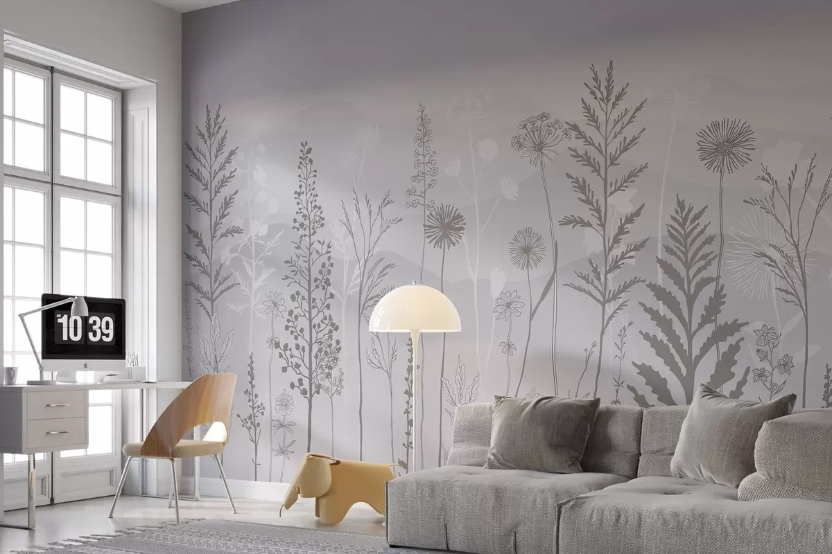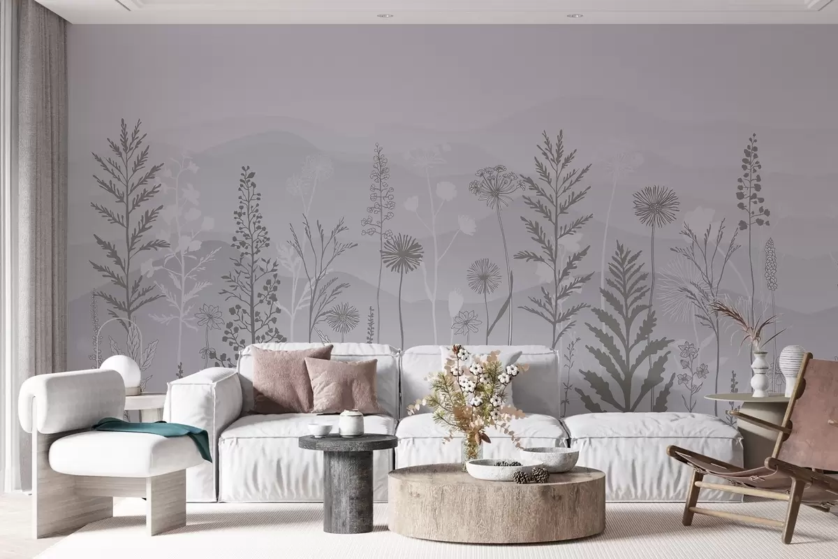 Fototapetes ekoloģiskā stila tapetes, savvaļas puķes pelēkos toņos Nr. w02443