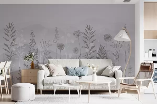 Fototapetes ekoloģiskā stila tapetes, savvaļas puķes pelēkos toņos Nr. w02443