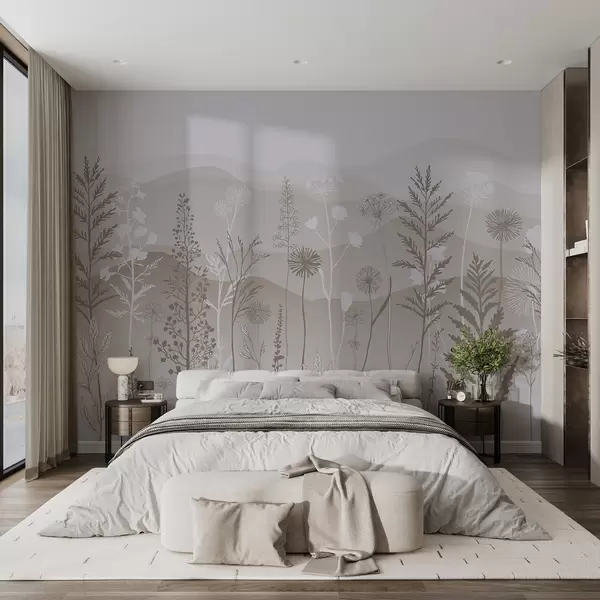 Fototapetes ekoloģiskā stila tapetes, savvaļas puķes gaiši brūnos toņos w02443v1