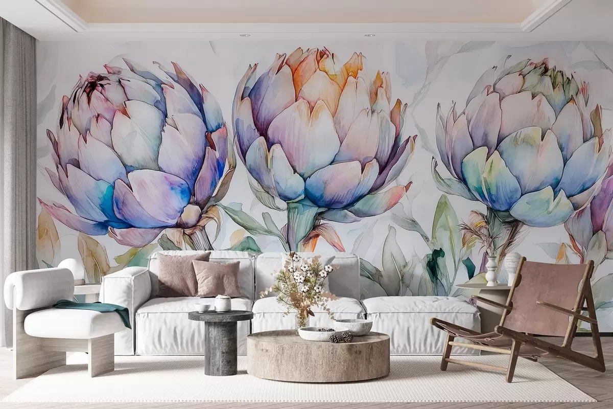 Fototapetes Skaists artišoku zīmējums, akvareļu stils, krāsains Nr. w02482
