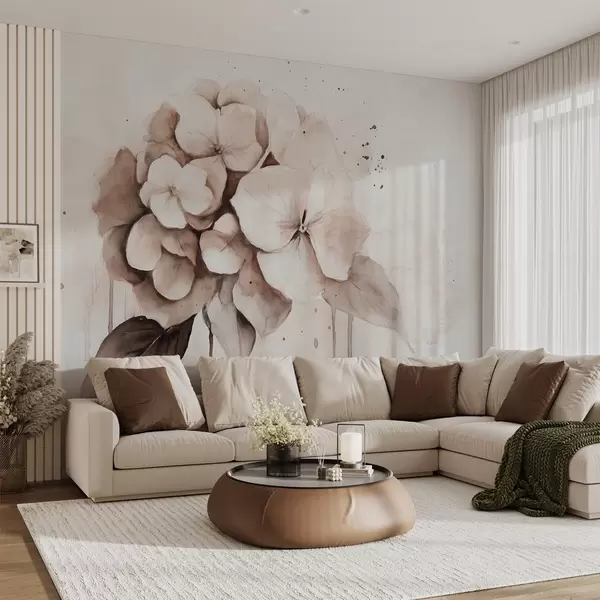 Fototapetes Hortenzijas zīmējums, akvareļa stilā, bēšas krāsas Nr. w02483
