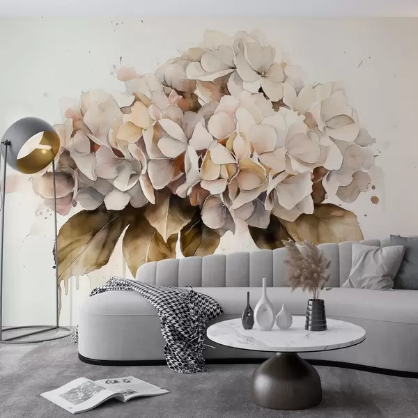 Fototapetes Hortenzijas zieda akvareļa stila zīmējums, smilškrāsas krāsas Nr. w02485