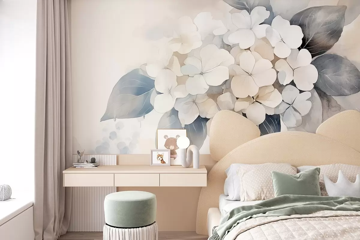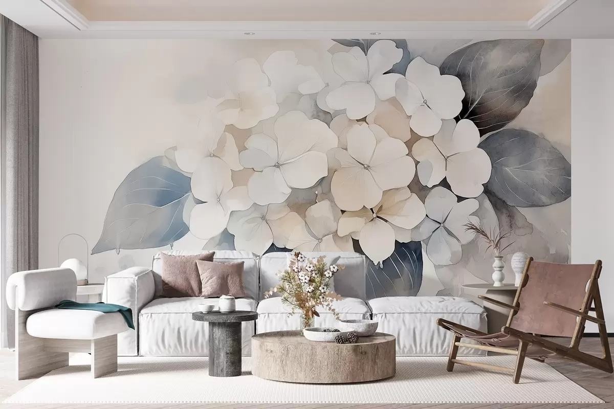 Fototapetes Hortenzijas zieds, maigas krāsas, akvareļu stilā Nr. w02491