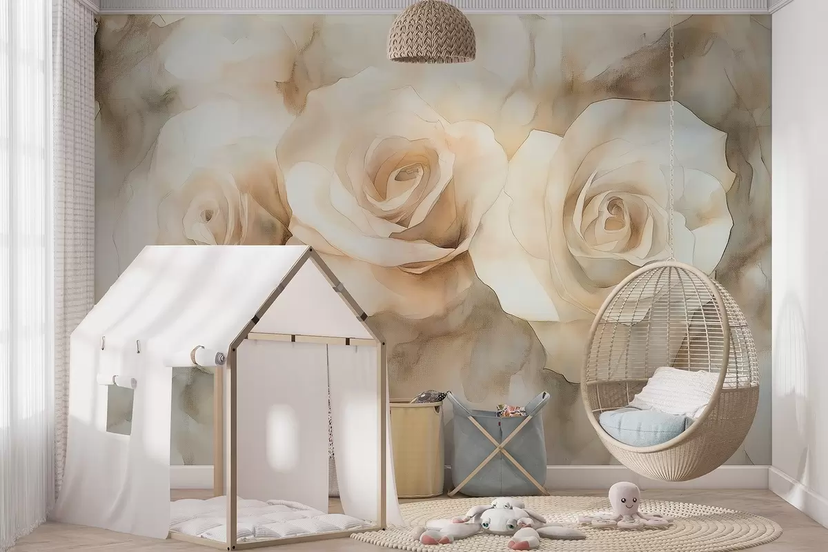 Fototapetes Skaistas rozes, akvareļu stils, smilškrāsas krāsas, bohēmas krāsas Nr. w02492