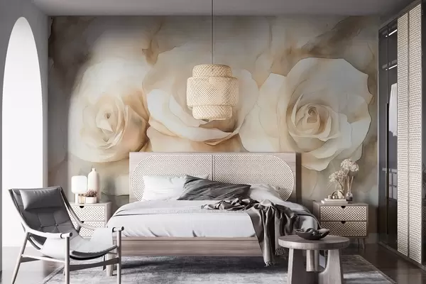 Fototapetes Skaistas rozes, akvareļu stils, smilškrāsas krāsas, bohēmas krāsas Nr. w02492