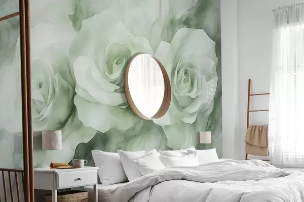 Fototapetes Skaistas rozes, akvareļu stils, zaļas krāsas, bohēmas krāsas Nr. w02492v2