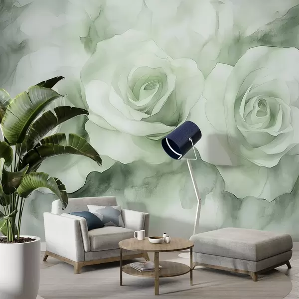 Fototapetes Skaistas rozes, akvareļu stils, zaļas krāsas, bohēmas krāsas Nr. w02492v2