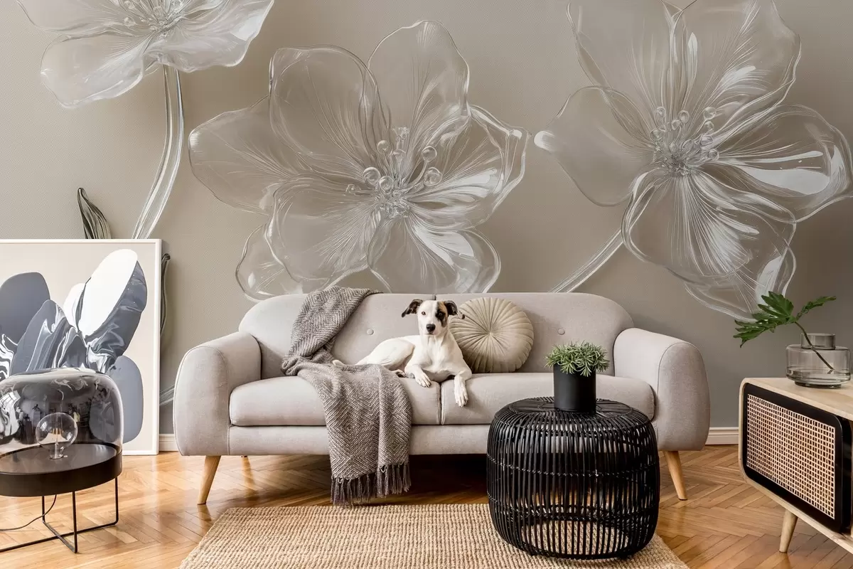 Fototapetes lieli ziedi stikla imitācija uz bēša fona Nr. w02518