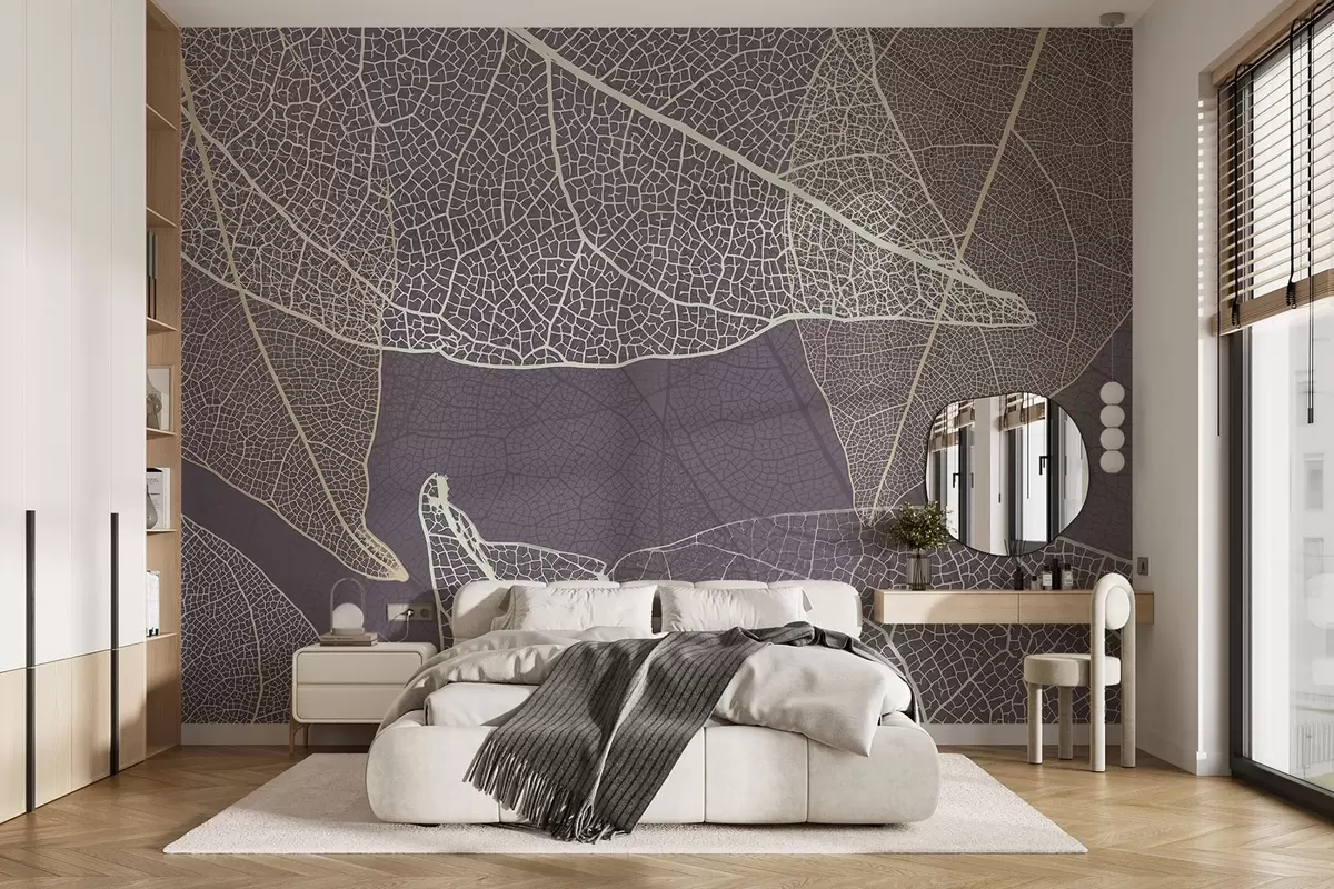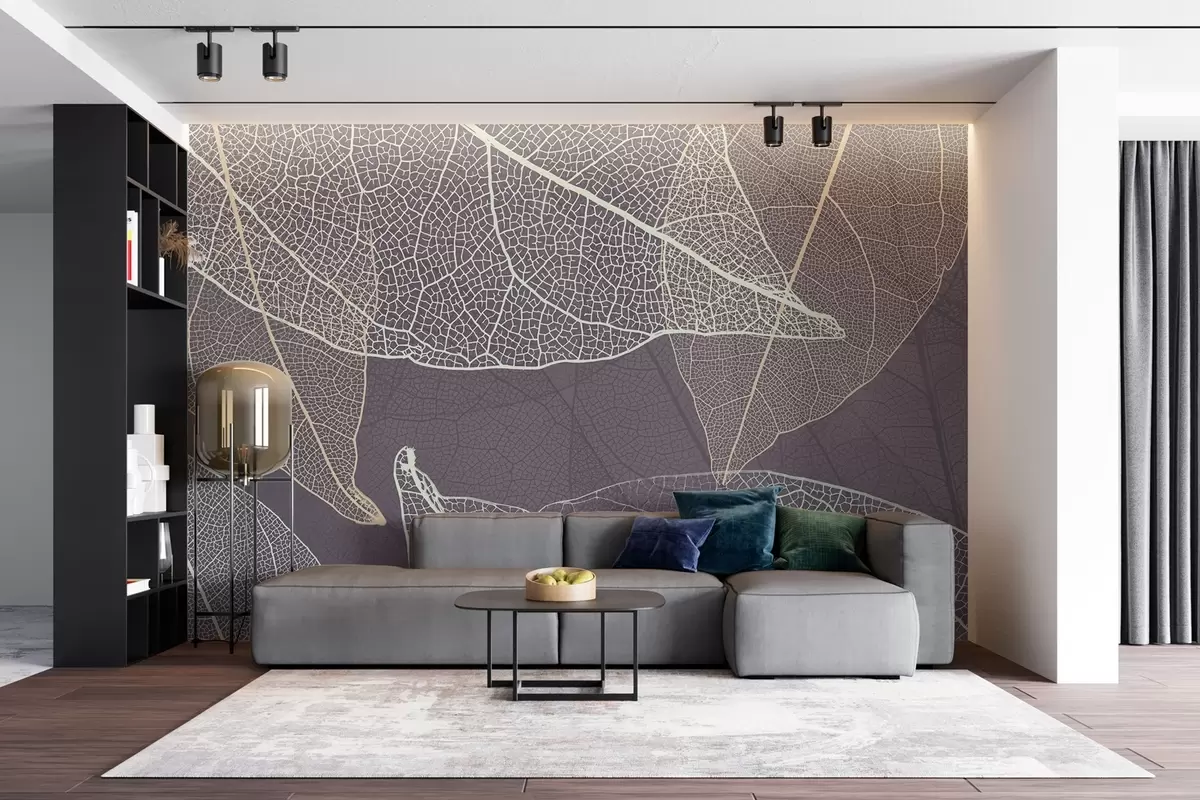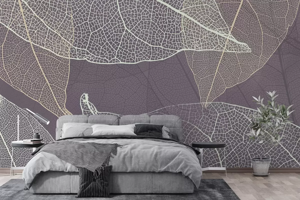 Fototapetes tuvplāns lapām ar violeti pelēkām dzīslām Nr. w02520v3