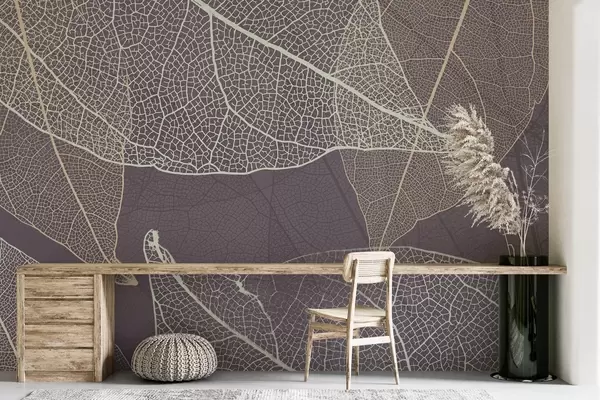 Fototapetes tuvplāns lapām ar violeti pelēkām dzīslām Nr. w02520v3