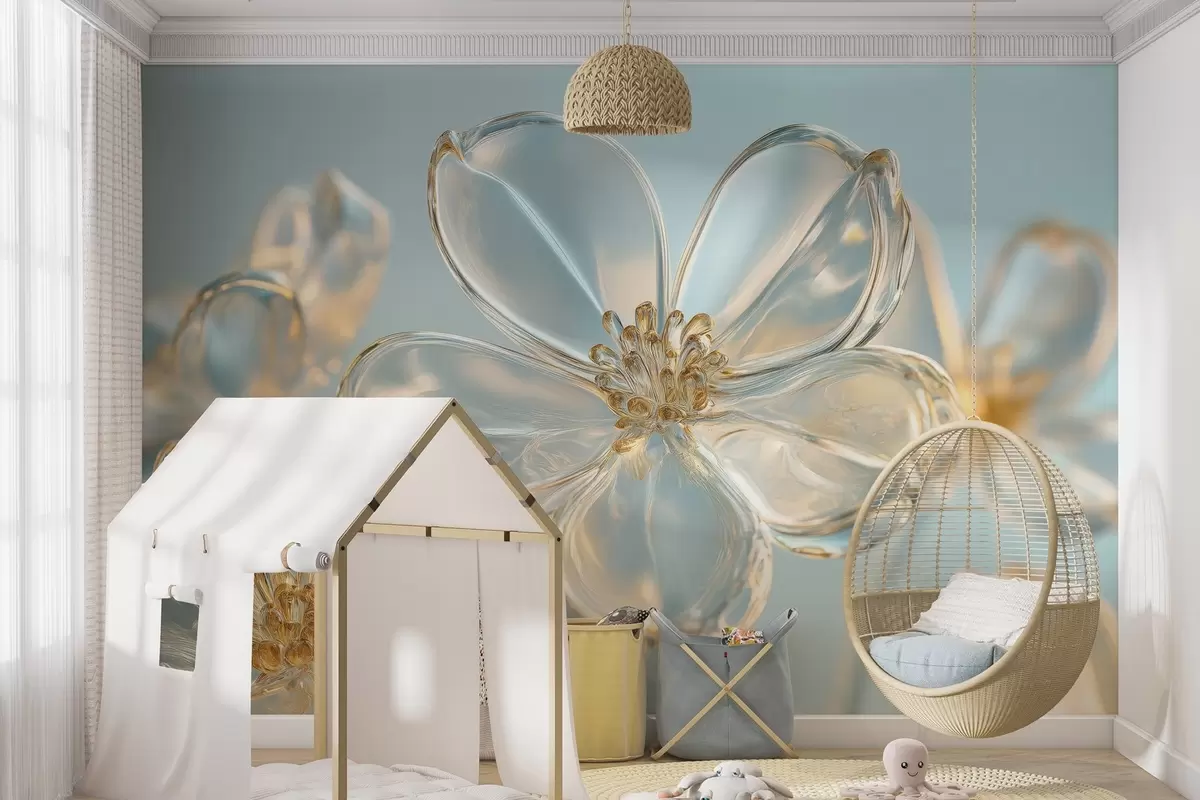 Fototapetes lieli stikla stila ziedi zilos toņos Nr. w02521