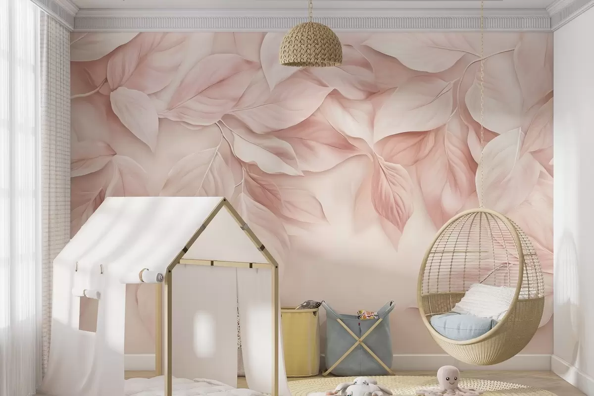 Fototapetes maigi rozā lapas meitenes guļamistabā Nr. w02549