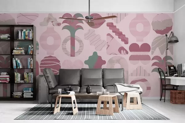 Fototapetes dažādas interesantas formas, moderna ģeometrija rozā krāsās w02550
