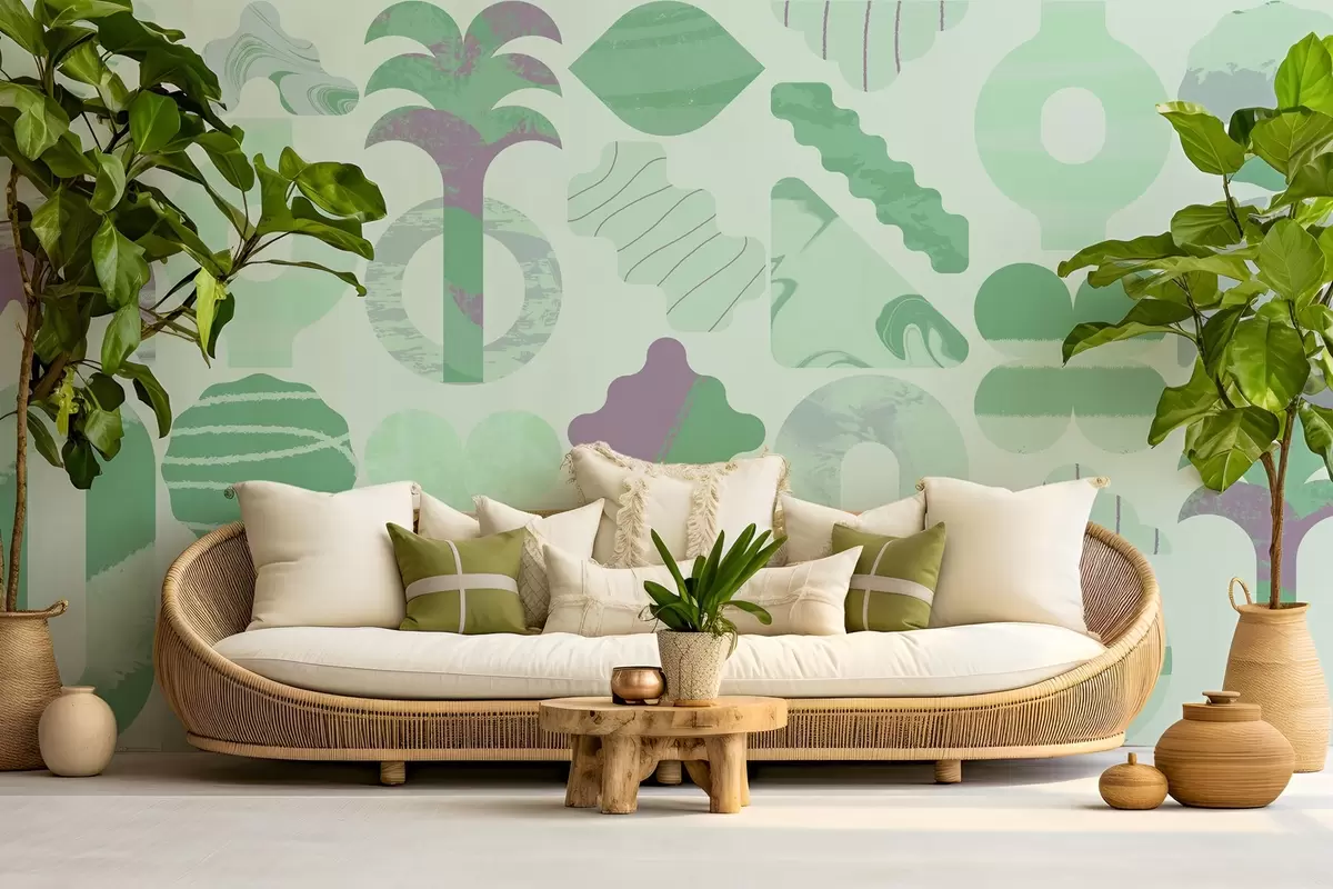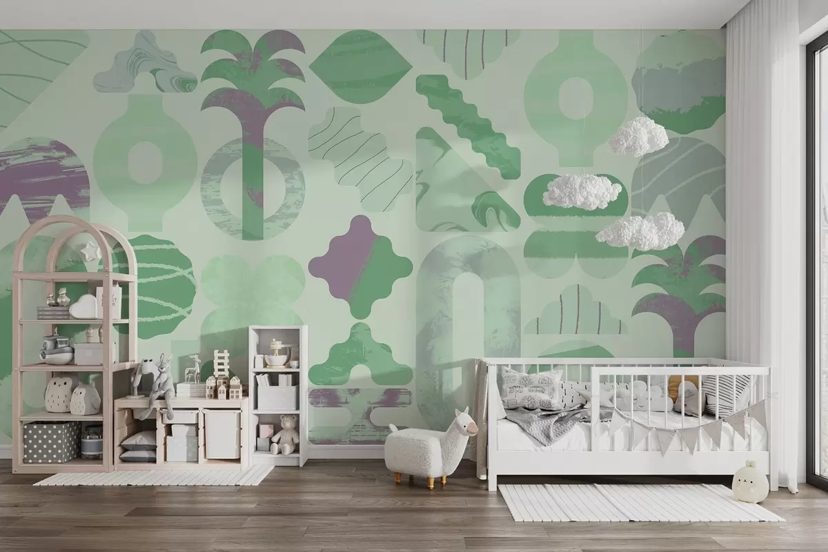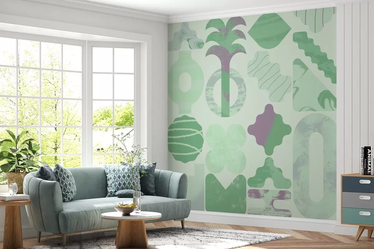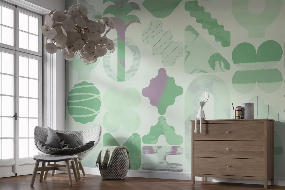 Fototapetes dažādas interesantas formas, moderna ģeometrija zaļās krāsās Nr. w02550v2