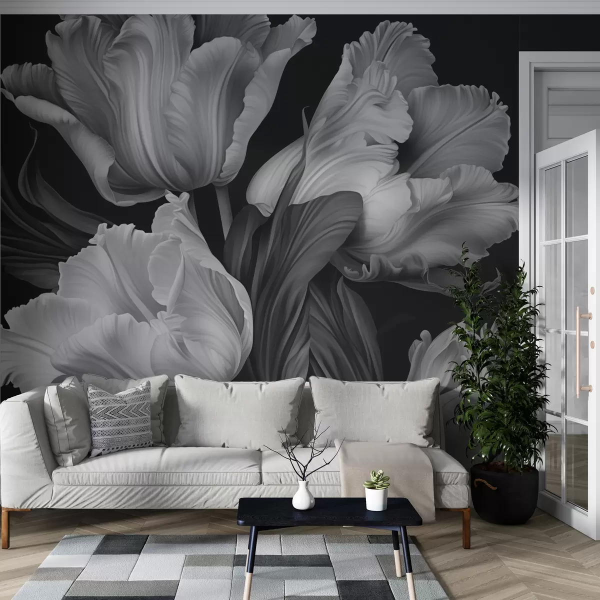 Fototapetes Melnbaltās tulpes fotoreālistiskā stilā Nr. w02557