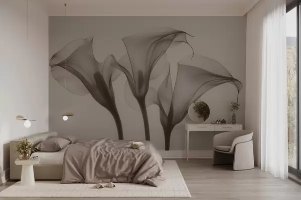 Fototapetes gaisīgi, caurspīdīgi Zantedeschia ziedi smilškrāsas toņos Nr. w02632