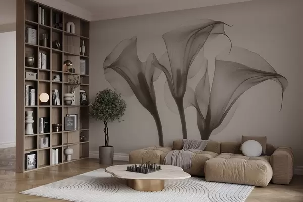 Fototapetes gaisīgi, caurspīdīgi Zantedeschia ziedi smilškrāsas toņos Nr. w02632