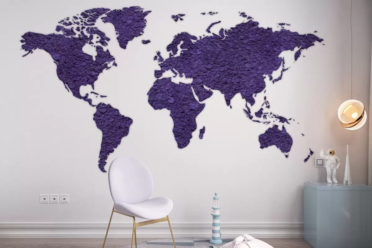 Fototapetes Pasaules karte ar sūnām, daba, violeta krāsu palete Nr. w02657v3