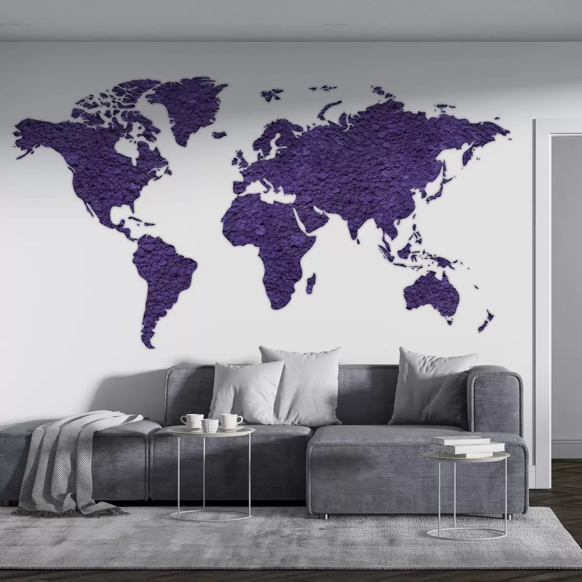 Fototapetes Pasaules karte ar sūnām, daba, violeta krāsu palete Nr. w02657v3