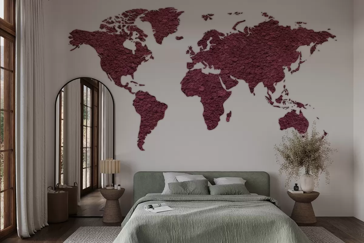 Fototapetes Pasaules karte ar sūnu, dabas, bordo krāsu paleti Nr. w02657v5
