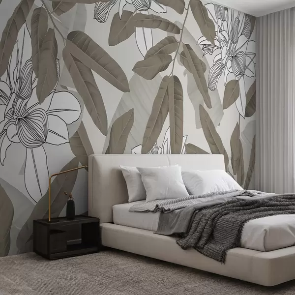 Fototapetes brūnas lapas un balti krāsoti ziedi Nr. w02669