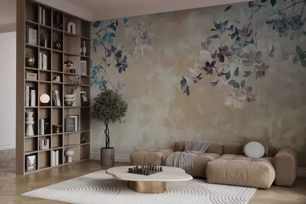 Fototapetes retro stila tapetes ar zariem un ziediem Nr. w02686