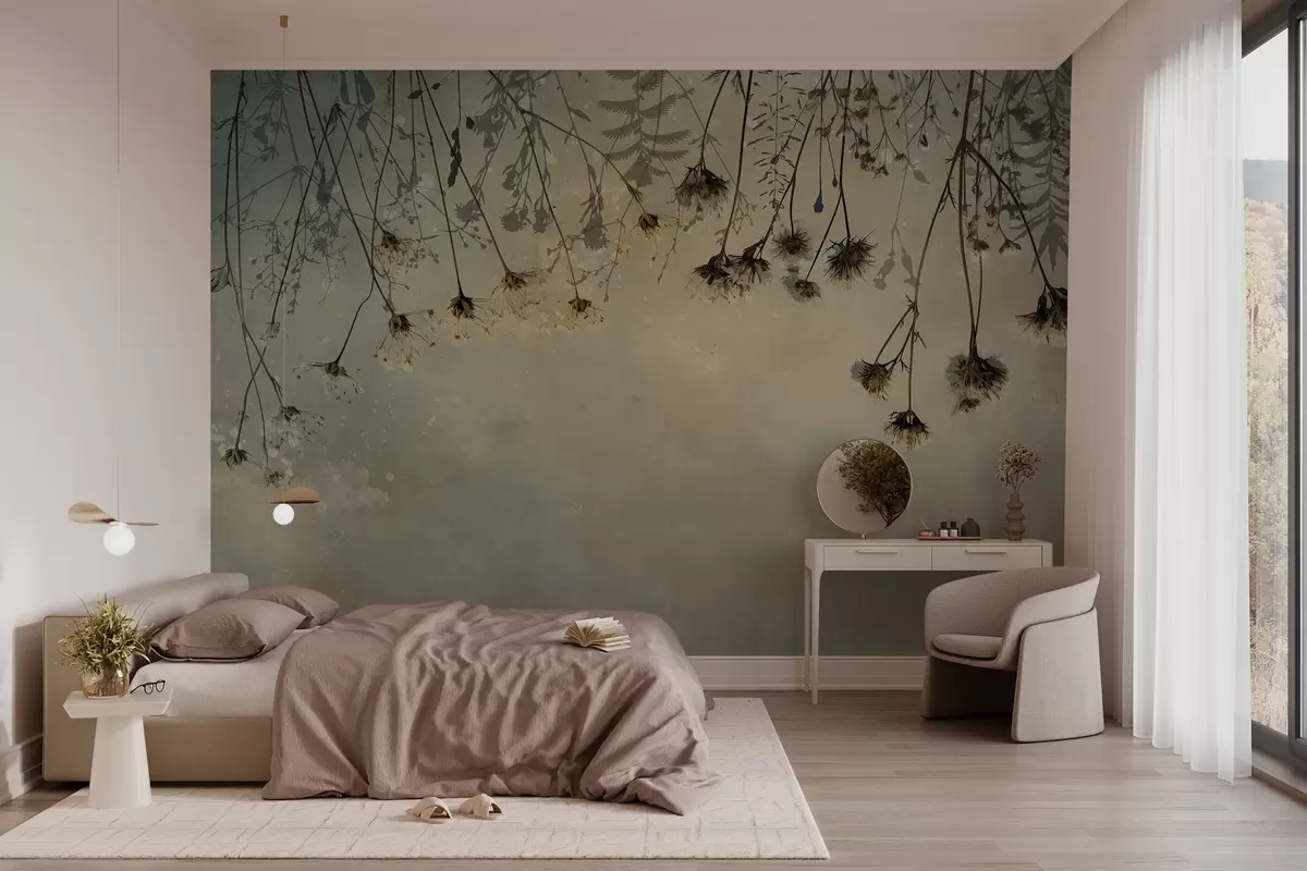 Fototapetes Savvaļas ziedi karājas no augšas siltās krāsās Nr. w02877