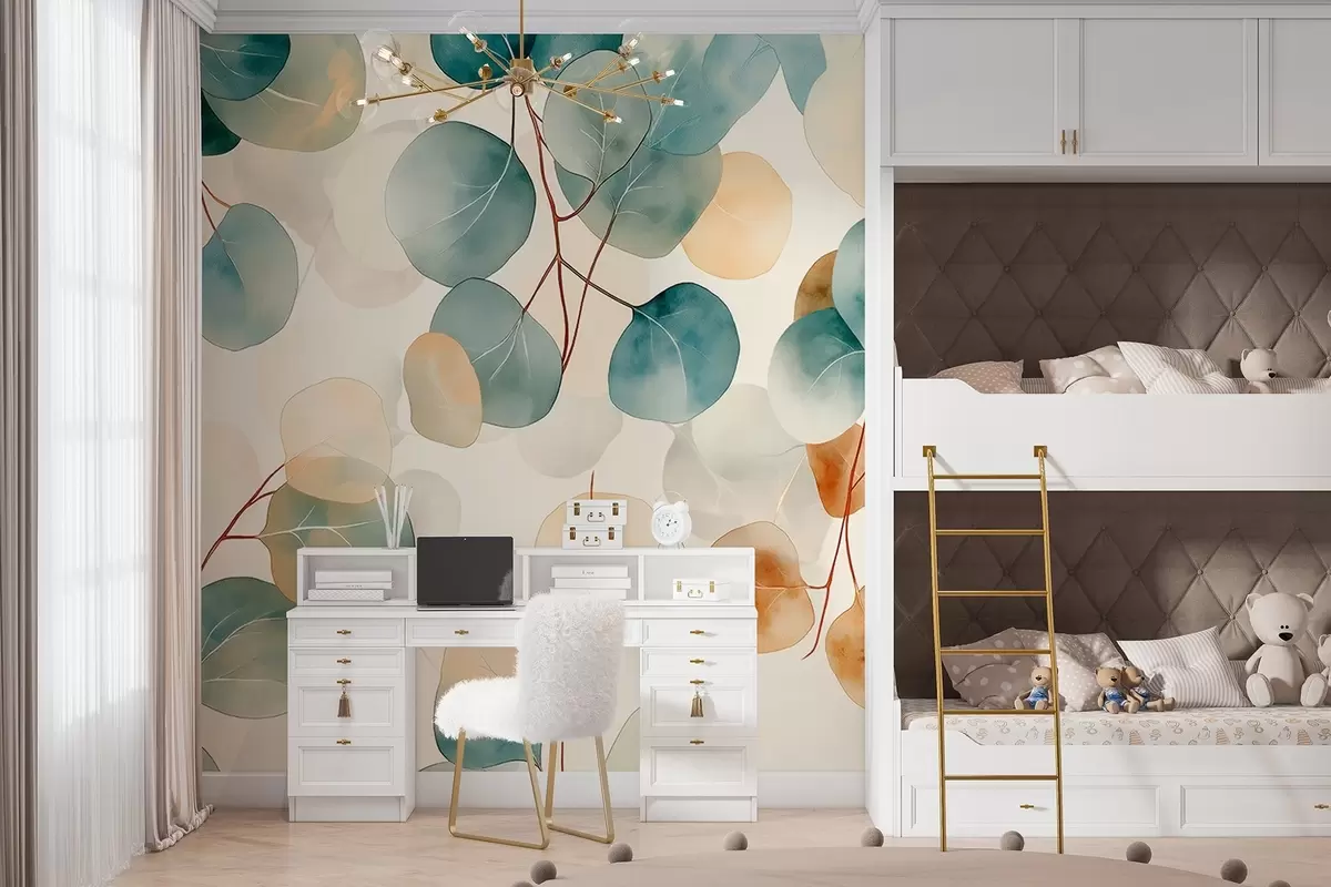 Fototapetes Akvareļu stila eikalipta zīmējums, maigas pasteļkrāsas, ziedu krāsas Nr. w02938