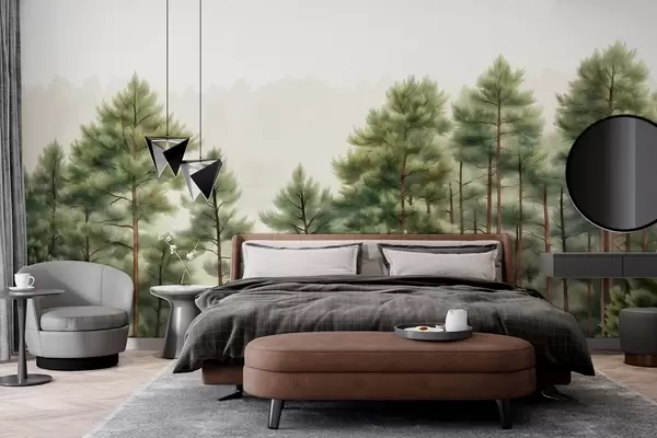 Fototapetes Mežs ar priedēm, eļļas stila zīmējums, daba Nr. w02942