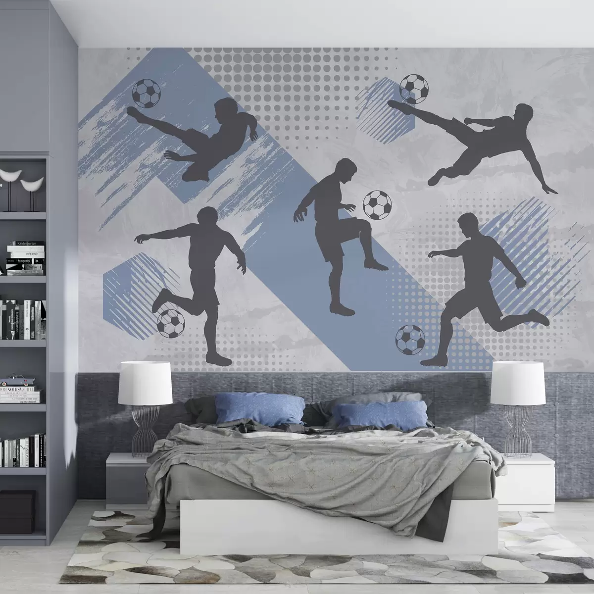 Fototapetes Futbolistu silueti uz abstrakta fona Nr. w03001v1