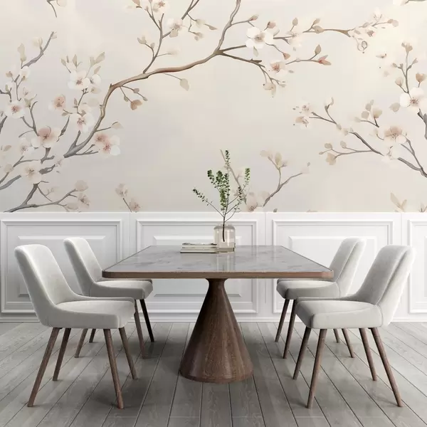 Fototapetes Maigi ziedošas sakuras zari ar maigi rozā ziedlapiņām uz gaiša fona Nr. w03081