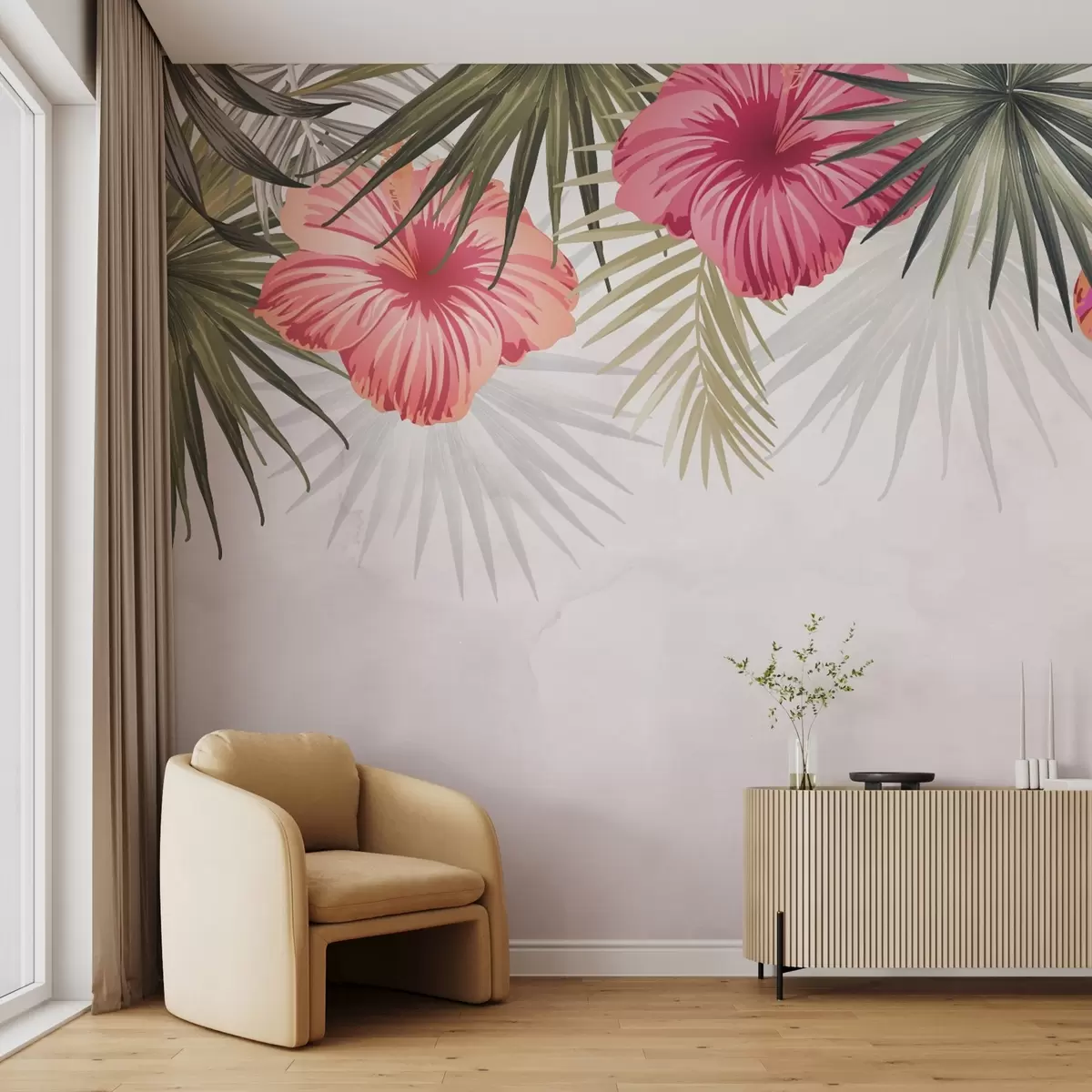 Fototapetes Tropu lapas un ziedi no augšas Nr. w03106